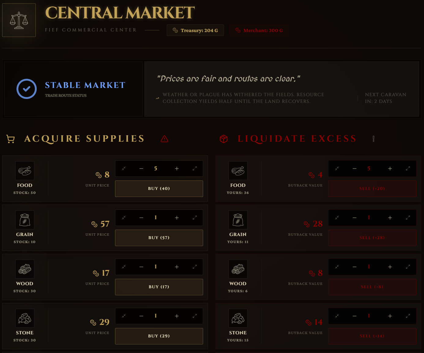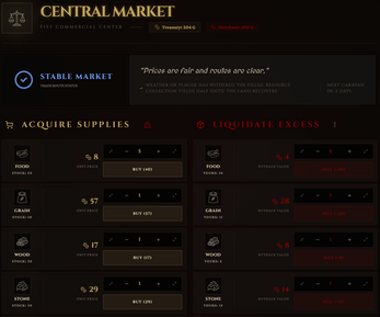- Dynamic Market: Trade your resources, but beware: the world is alive. Droughts, plagues, wars, and bountiful harvests will drastically alter prices and merchant funds.