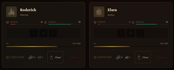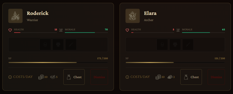 - Tactical Mercenary Combat: Hire Warriors, Archers, and Rogues. Rank them up from Recruits to Legends, and master the positioning system. Put an archer in the Vanguard and they will be slaughtered; put a Rogue in the Rearguard behind a Warrior to trigger devastating sneak attacks.